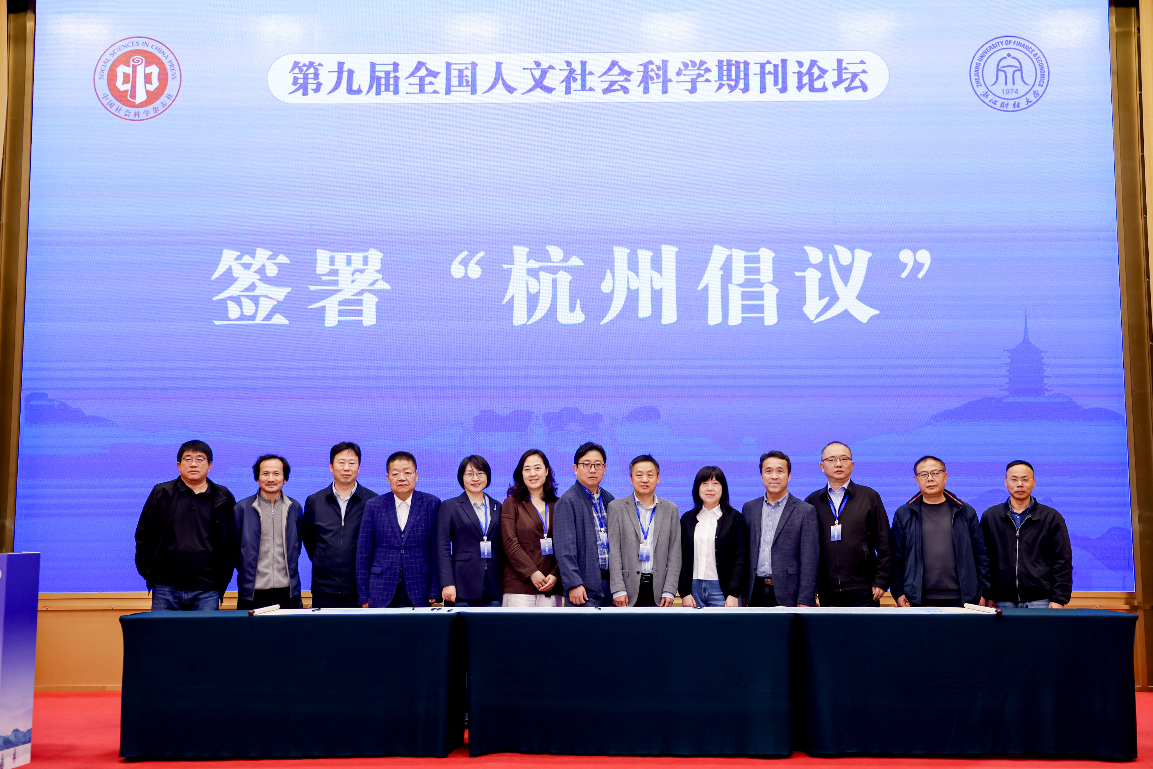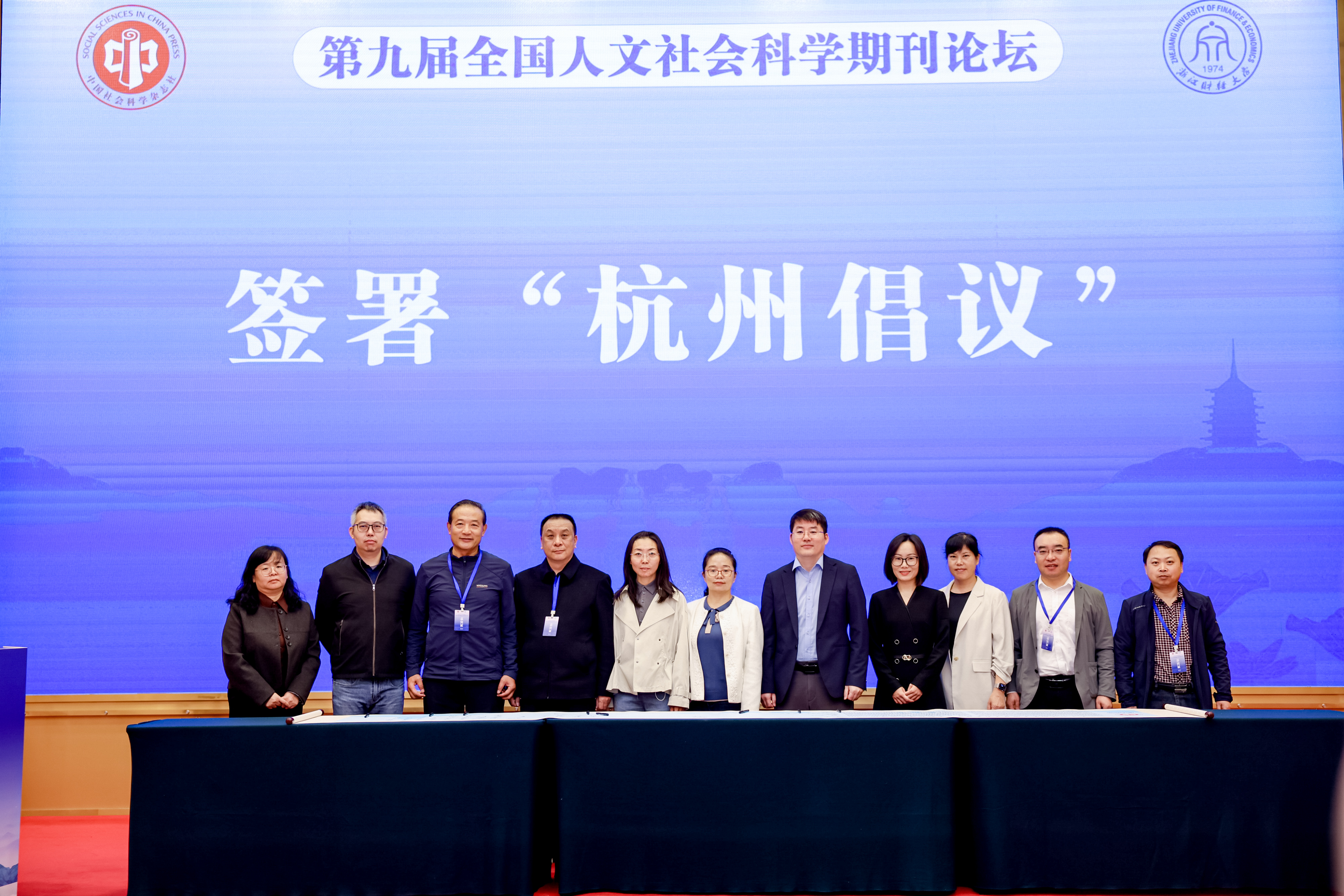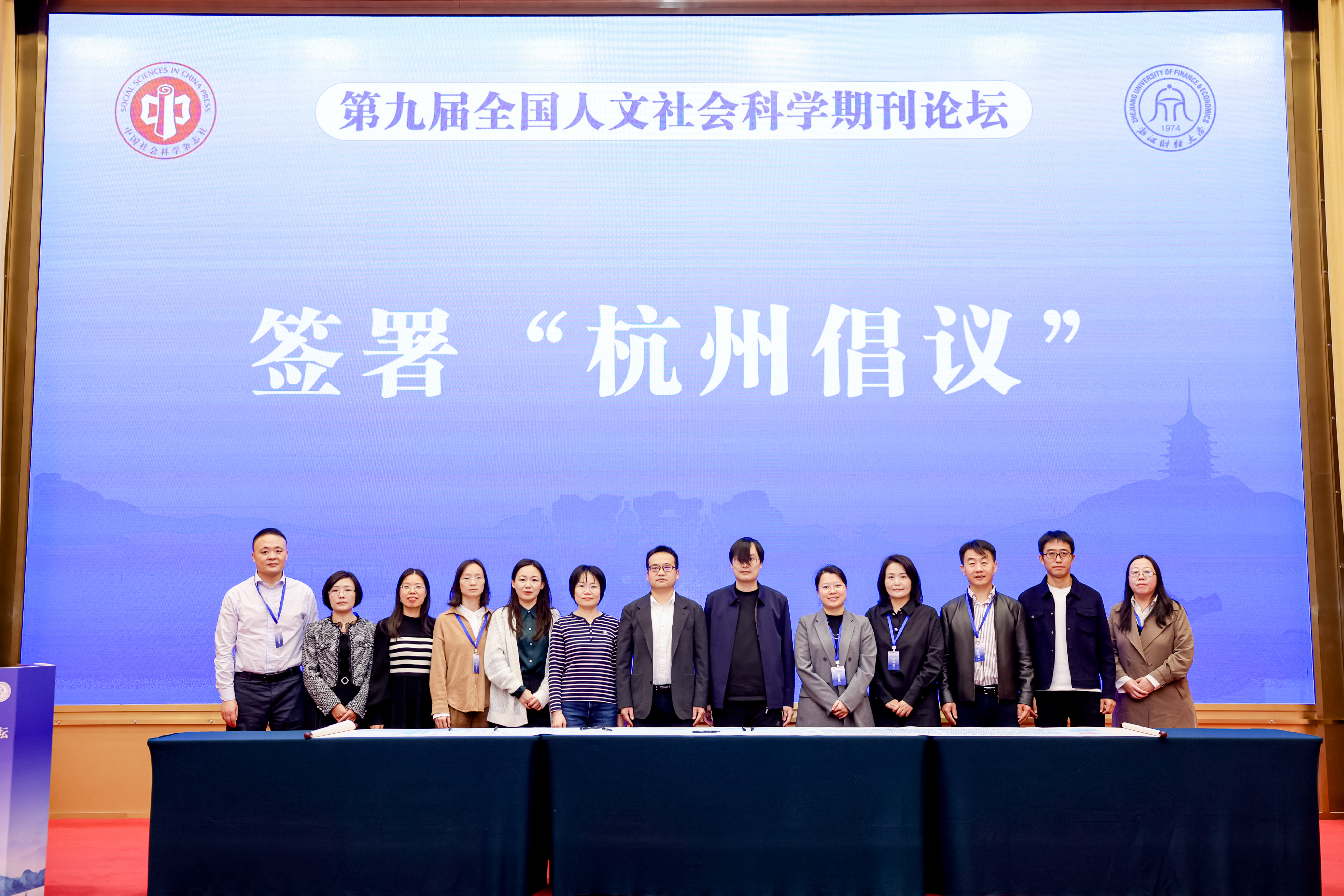 11月8日,由中国社会科学杂志社与浙江财经大学联合主办的第九届全国人文社会科学期刊论坛在杭州举行。本届论坛以“中国自主知识体系构建中学术期刊的使命与担当”为主题,汇聚了近50家学术期刊的70余位代表,共商新时代人文社会科学期刊发展。与会学者一致表示,要坚持以习近平新时代中国特色社会主义思想特别是习近平文化思想为指引,牢牢把握正确政治方向、学术导向和价值取向,自觉服务党和国家工作大局,聚焦刊发前沿成果、引领学术创新、传播中国声音,不断推进知识创新、理论创新、方法创新,为加快构建中国哲学社会科学自主知识体系贡献力量。会上宣读并签署了《关于加快构建中国哲学社会科学自主知识体系的倡议》,也称《杭州倡议》。