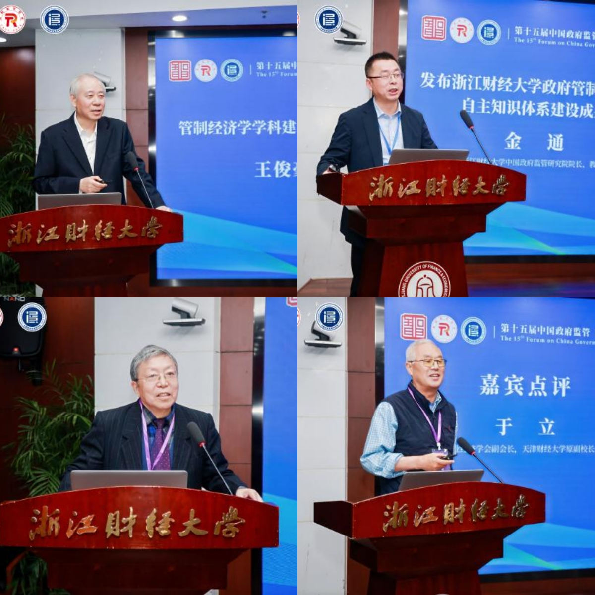本次论坛特别设立了“浙江财经大学政府管制(监管)研究30年回顾与展望”环节。王俊豪教授回顾了管制经济学引进与发展的四个阶段,并阐述了管制经济学自主知识体系的核心特色:自主性、创新性、体系性、开放性。中国政府监管研究院院长金通教授发布了浙江财经大学30年来在政府管制(监管)领域取得的8大方面的标志性重大成果。东南大学集团经济与产业组织研究中心原主任胡汉辉教授、中国工业经济学会副会长于立教授应邀作点评。